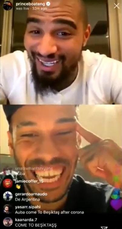 Beşiktaş’ın devre arası transferi Kevin Prince Boateng, Instagram canlı yayınında Arsenal’in yıldızı Aubameyang ile iki taraflı canlı yayın gerçekleştirdi.