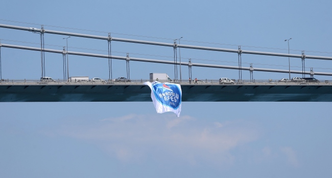 Ulaştırma ve Altyapı Bakanlığı Karayolları Genel Müdürlüğü’nden alınan izinlerin ardından köprülere asılan Anadolu Efes bayrakları 10 gün boyunca İstanbul Boğazı’nda dalgalanacak.