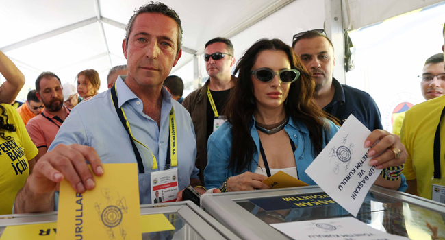 Mevcut başkan Ali Koç, 27 numaralı sandıkta oyunu eşi Nevbahar Koç ile birlikte kullandı.