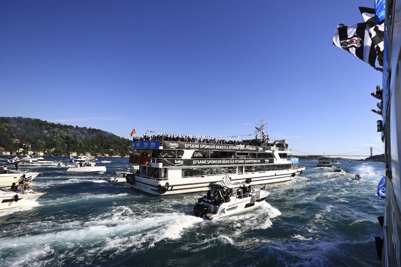 Beşiktaş yönetim kurulu üyeleri, teknik heyet ve oyuncular, şampiyonluk kupasını almak üzere deniz yoluyla Vodafone Park’a hareket etti. Beşiktaşlı taraftarlar da teknelerle siyah-beyazlı ekibi yalnız bırakmadı.