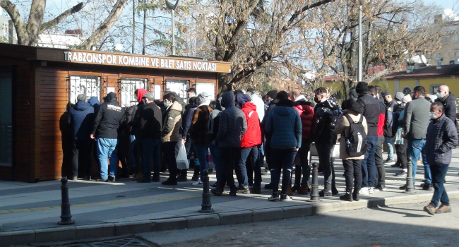 Spor Toto Süper Lig’de 2021-22 sezonunun ilk yarısında aldığı galibiyetlerle şampiyonluğa koşar adım giden Trabzonspor’un taraftarları, ligin 3. sırasında yer alan Medipol Başakşehir maçına büyük ilgi gösteriyor. Bordo mavili taraftarlar, ilk yarının Trabzon’da gerçekleşecek son düellosunu seyretmek için sabahın erken saatlerinde gişeler önünde kuyruk oluşturdu.