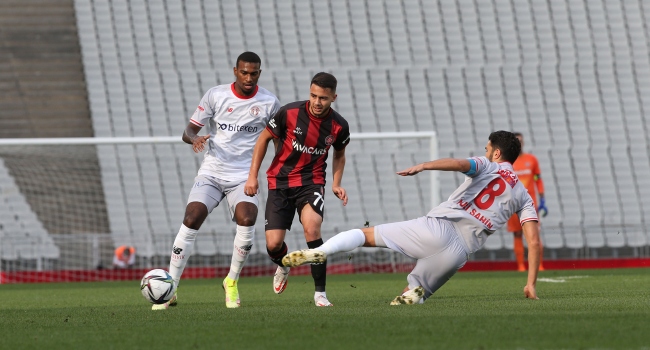 73. dakikada Fraport TAV Antalyaspor gole yaklaştı. Fredy’nin uzun pasında savunmanın arkasına koşu yapan Gökdeniz Bayrakdar’ın ceza sahası içinde yaptığı vuruşta, diziyle topa müdahale eden kaleci Viviano, gole izin vermedi.
